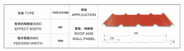 铝瓦YX25-210-840型
