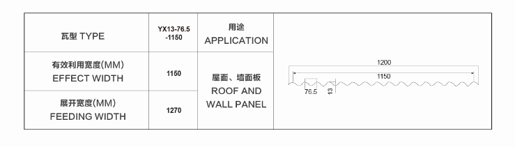 铝瓦YX13-76.5-1150型